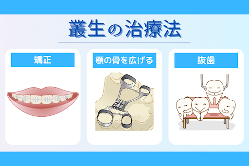 叢生の治療方法として、主にワイヤー矯正とマウスピース矯正があります。症状が重度の場合、抜歯によりスペースを確保する場合もあります。