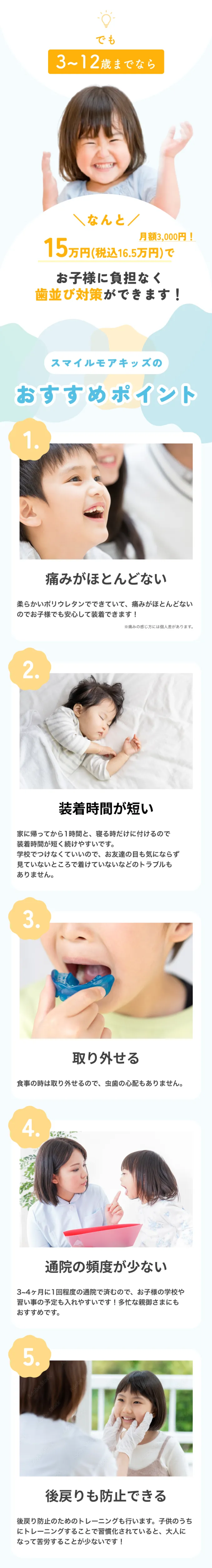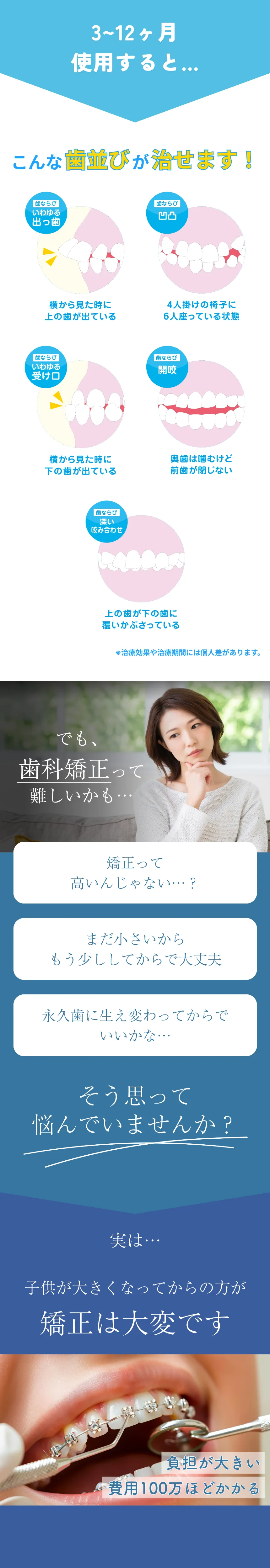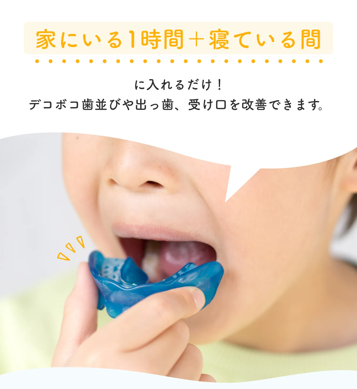 ・1日20時間以上の装着をお願いしています。使用状況や装着時間は、歯の移動量や効果に影響します。