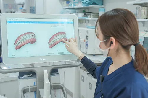 3Dシミュレーションを行い、治療後の歯並びがどうなっていくか、治療前に確認することができます。 矯正を始める前に治療後のイメージができるので、マウスピース矯正は不安…という方こそぜひご相談ください。